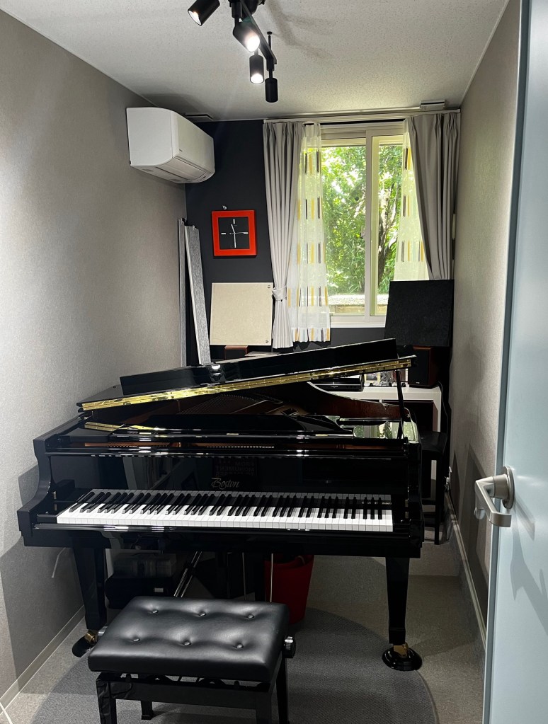 閑静な住宅地にひっそりと佇む音楽スタジオです。長年の憧れだったスタンウェイデザインのBostonグランドピアノを設置しています。